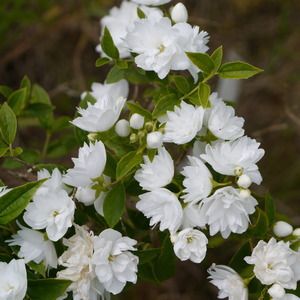 Раскидистый кустарник. Он обильно цветет белыми или кремово-белыми душистыми цветками.