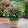 Хорошо подходит для контейнеров. Цветки эффектные, белые, по мере цветения становятся розовыми, а затем красноватыми.