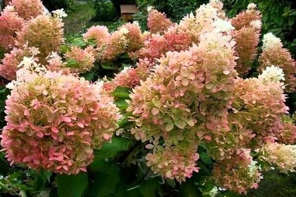 Соцветие метелка, дробно-конической формы с выступом и состоящие из множества белых цветков, к осени приобретающих сиреневато-розовый оттенок.