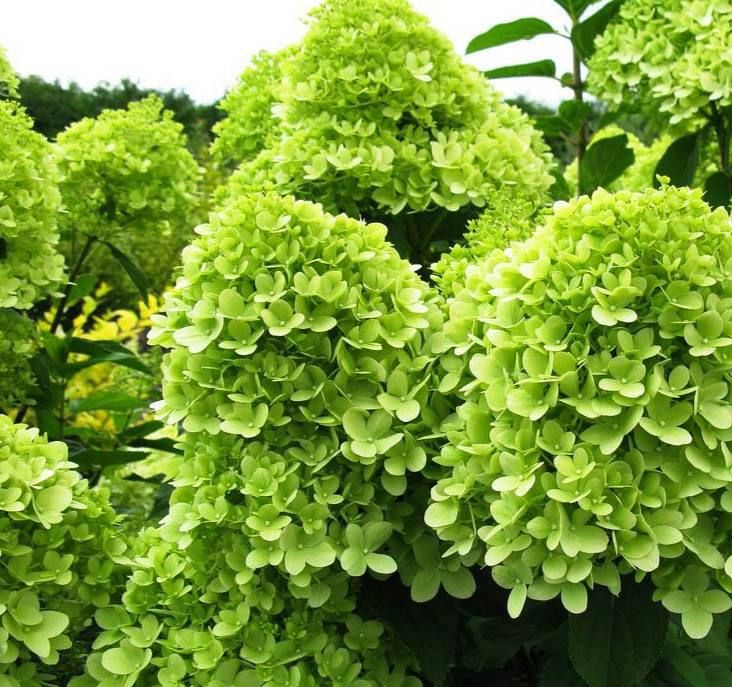 Цветет гортензия сорта «Лаймлайт» с июля, сначала ее соцветия в форме пышных метелок, размером до 30см, имеют нежно-зеленый оттенок, похожий на сочный лайм.