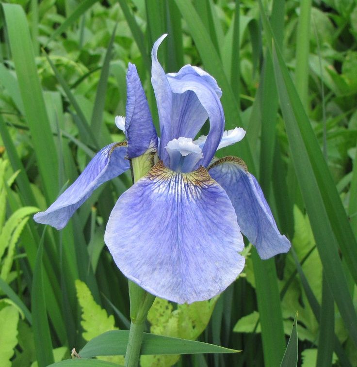 Цветок нежно-сиреневый с фиолетовыми прожилками. Высота растения 60-90 см. Лучшее время для посадки ириса - начало осени.