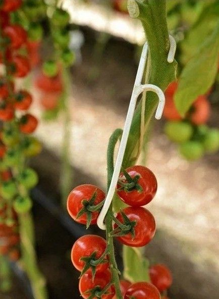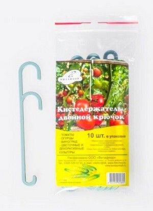 Кистедержатель - двойной крючок используется для быстрой фиксации стеблей растений на опоре. Использование кистедержателя в теплицах помогает значительно сократить время на уход за растениями и, значит, повысить производительность труда. Кистедержатель защищает стебли растений от надлома, что, в свою очередь, предотвращает потери урожая. Поддержкой стеблей помидоров и огурцов в теплицах область применения кистедержателя не ограничивается. Он подходит для любых культур, которым требуется подвязка. С использованием кистедержателей можно красиво формировать на опоре вьющиеся растения. Кистедержатели можно использовать и в ландшафтном дизайне. Например, для того, чтобы скрыть дефекты хвойных растений и сформировать красивую корону, просто притянув ветви в нужных местах к стволу.