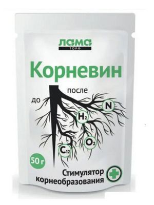 Мощный биостимулятор для растений, который изготовлен на основе индолилмасляной кислоты (ИМК), ее концентрация в препарате составляет 5 г/кг. Корневин имеет пролонгированное воздействие на растения, что помогает развитию крепкой корневой системы. Используется для ускорения корнеобразования при черенковании, улучшении приживаемости рассады овощных и декоративных культур при пересадке.