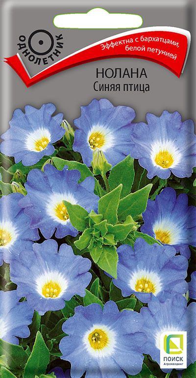 Это настоящее сокровище для оформления сада. Густооблиственные стебли образуют сплошной коврик высотой 10 см и диаметром до 70 см. Листья темно-зеленые. Над ними на длинных цветоножках приподнимаются крупные цветки, имеющие форму колокольчика. Диаметр цветков до 4 см. Цветёт обильно и продолжительно с середины июня и до заморозков. Нолана прекрасно подходит для использования в качестве почвопокровного, контейнерного и ампельного растения в кадках и подвесных кашпо.