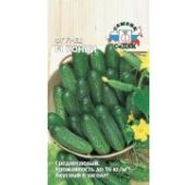 Скороспелый (40-43 дня от всходов до плодоношения) партенокарпический гибрид с букетным заложением завязей (до 5 в узле!) для выращивания в теплицах и под временными пленочными укрытиями. Растение женского типа цветения, сильнорослое, с ограниченным ростом боковых побегов, что облегчает уход и сбор урожая. Плоды цилиндрические, длиной 10-12 см, диаметром 3,5-4,0 см, массой 120-130 г, темно-зеленые с частыми бугорками среднего размера, белошипые. Гибрид устойчив к настоящей мучнистой росе, оливковой пятнистости, среднеустойчив к ложной мучнистой росе. Зеленцы отличного вкуса и универсального назначения (засолка, маринование, свежие салаты). Урожайность 14,6-15,8 кг/м2. Посев на рассаду — в конце апреля. Высадка рассады в грунт — в конце мая – начале июня в фазе 3-4-х настоящих листьев. Посев непосредственно в грунт – в мае – июне. Схема посадки: 30х70 см.