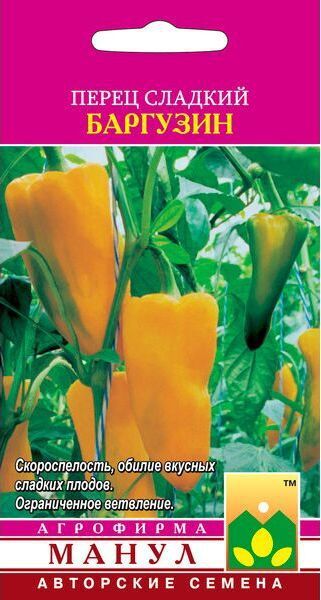 Перец сладкий Баргузин – раннеспелый полудетерминантный гибрид (120-130 дней). Формирует мощные, среднеоблиственные кусты с ограниченным ветвлением высотой 80-100 см. Плоды зеленые или желтые конусовидные. Средний размер 15-17?6-8 сантиметров, масса 170-200 грамм, 3-4 камеры. Толщина стенки 6-7 миллиметров. Прекрасные вкусовые и товарные характеристики. Подходит для выращивания в открытом и защищенном грунте. Устойчивый к вирусам табачной мозаики. Необходимо высевать исключительно пророщенные семена. Можно использовать для потребления в свежем виде, домашней кулинарии и переработки. Является источником витаминов А, К, В, С, Е и Р. Рекомендованная плотность посадки составляет 5 растений на квадратный метр.