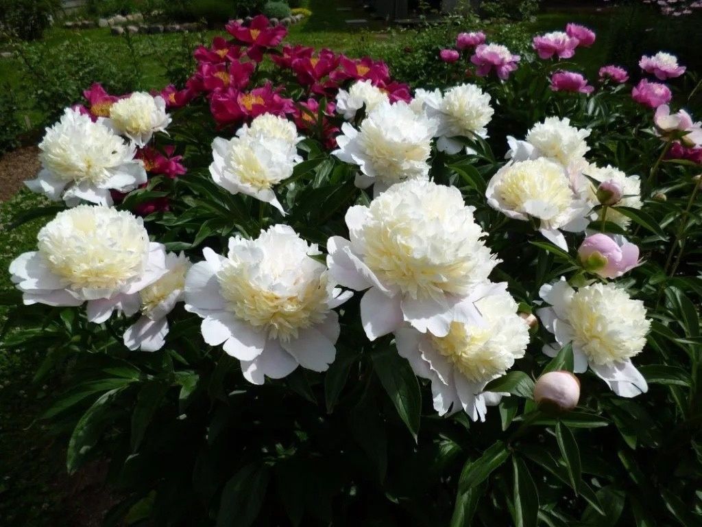 Цветы пиона крупные, до 20см!!! Куст требует опоры во время цветения.