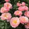 Цветки крупные чашевидные интенсивно розово-лососевого цвета с центром из желтых тычинок.