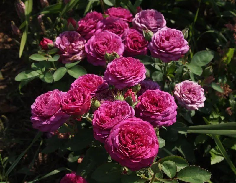 Изысканная палитра, собранная из нежно-сиреневых, лиловых и коралловых красок, деликатно украшает тонкие лепестки. Со временем они становятся все ярче и насыщеннее. Цветки густомахровые, фиолетового тона, с великолепным сильным ароматом. Диаметром 6-9 см от чайно-гибридной розы.