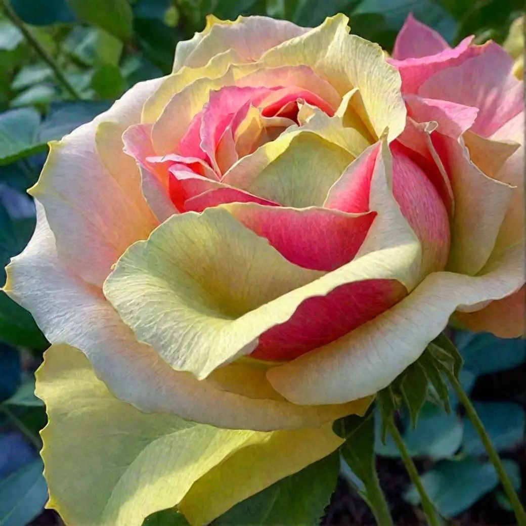 Необыкновенная роза, которая отличается своими классическими тугими бутонами нежного розового оттенка. С внешней стороны цветки слегка салатовые, а изнутри по мере распускания – абрикосово-розовые.