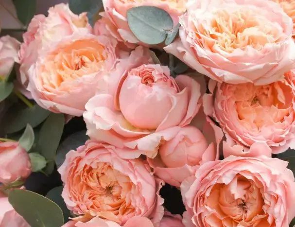 Цветки отличаются своими сложными цветовыми переливами, варьирующимися от нежно-розовых до персиковых оттенков. Бутоны 10-14см