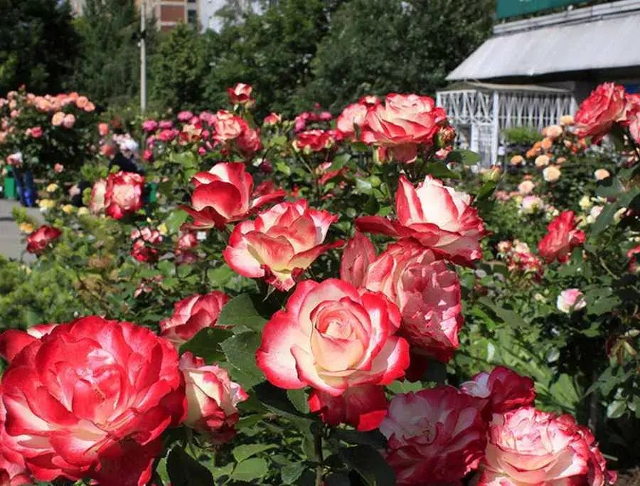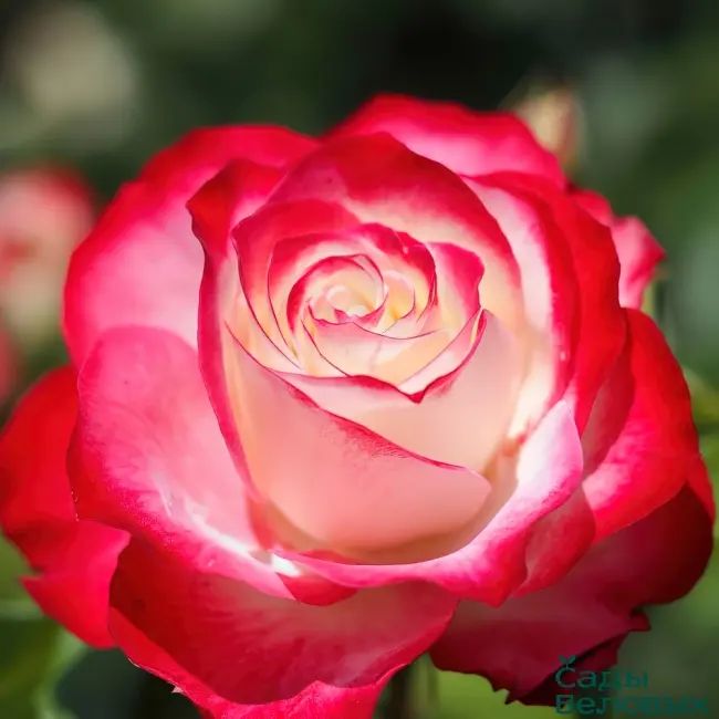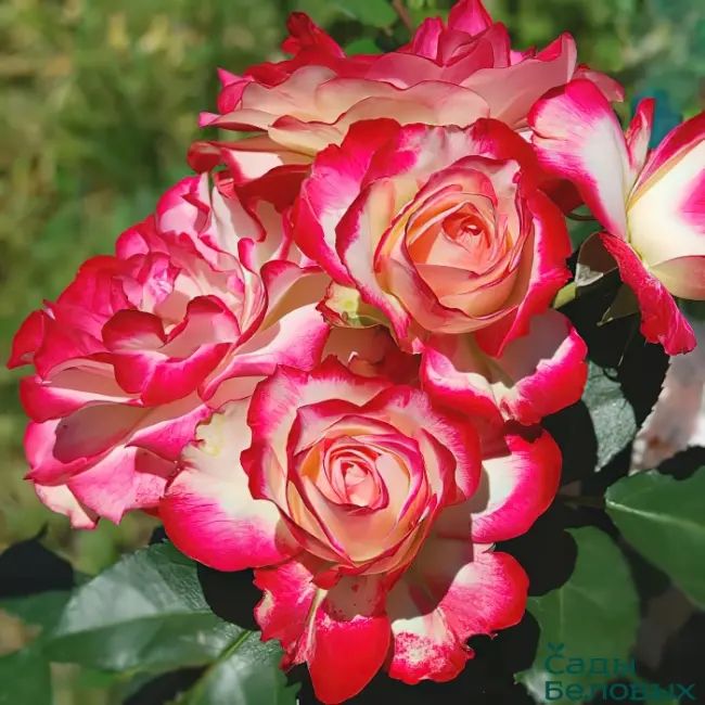 Эта эффектная роза покоряет своей красотой. В полуроспуске бело-кремовые лепестки, окантованы нежной, малиновой каймой, которая по мере раскрытия цветка расширяется, а ее интенсивность усиливается до вишневой.