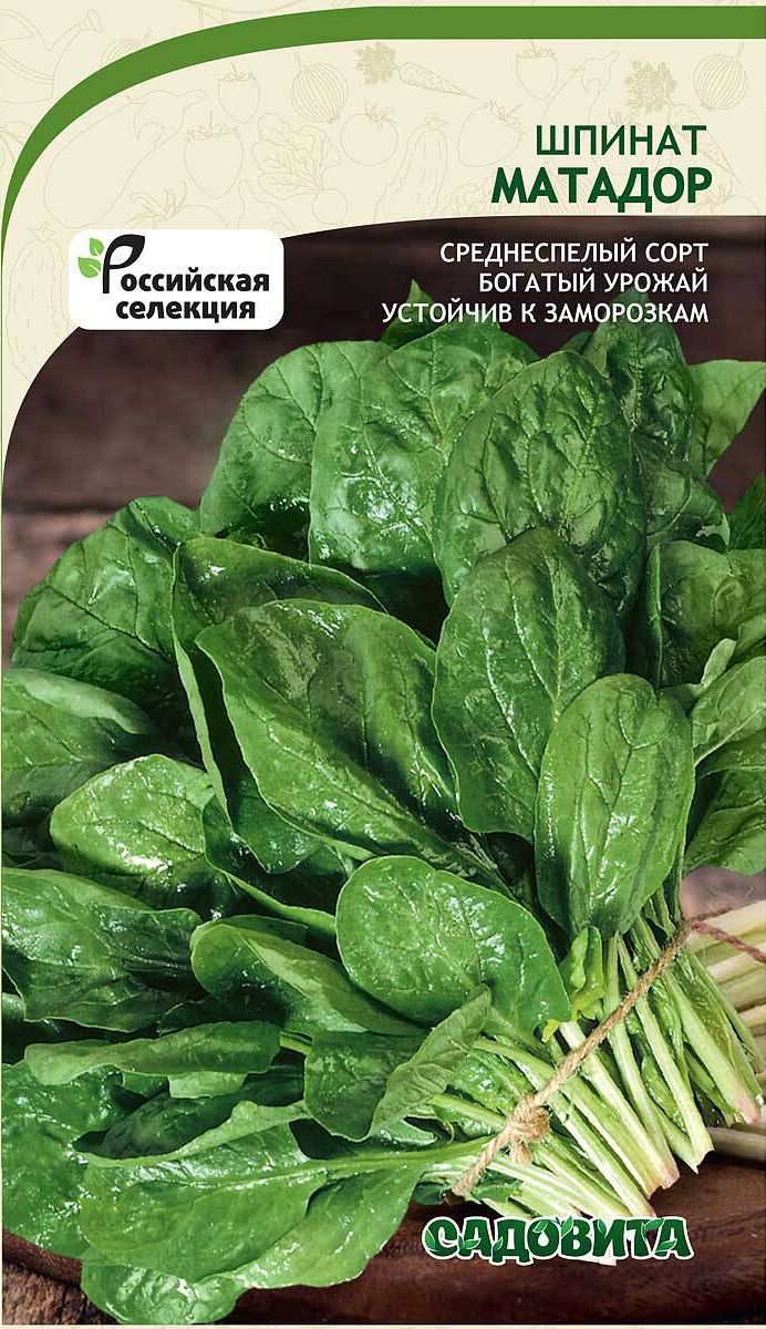 Среднеспелый сорт шпината. Вегетационный период – 40-50 дней после посадки. Рекомендуется для выращивания в открытом грунте и теплицах. Розетка компактная, плотная, массой 50-55 грамм. Листья овальные, слегка вытянутые, ярко-зеленые с глянцем. Черешки короткие. Сорт показывает отличную урожайность – 2-2,5 кг с 1 кв.м. Устойчив к заморозкам, возможен многократный посев. Широко применяется в кулинарии в свежем виде, так же сохраняет свои полезные свойства после термической обработки.