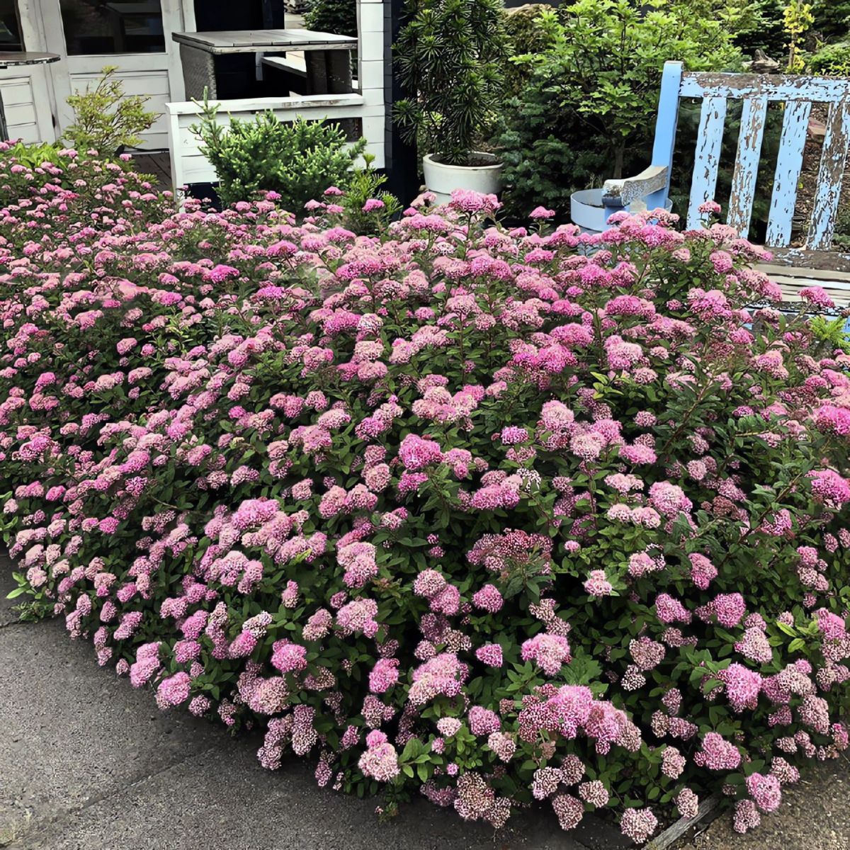 Великолепно смотрятся однородные куртины, сформированные из карликовых сортов спиреи, украшенные многочисленными соцветиями. Идеально подходит для бордюров.