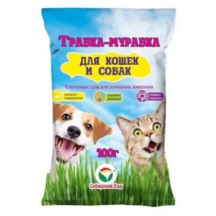 Смесь семян злаковых трав для выращивания полезной витаминной зелени, необходимой в рационе здорового питания кошек, собак, других домашних животных. Улучшит пищеварение, очистит кишечник домашних любимцев.