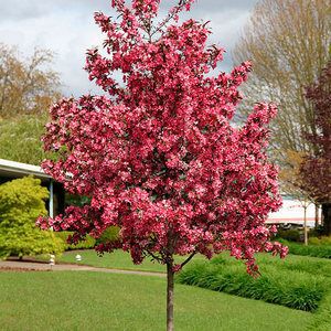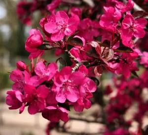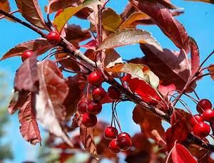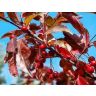 Весной завораживает обильно цветущее растение. Летом дерево усыпано пурпурными или тёмно-фиолетовыми листьями с красными, продолговатыми яблочками.
