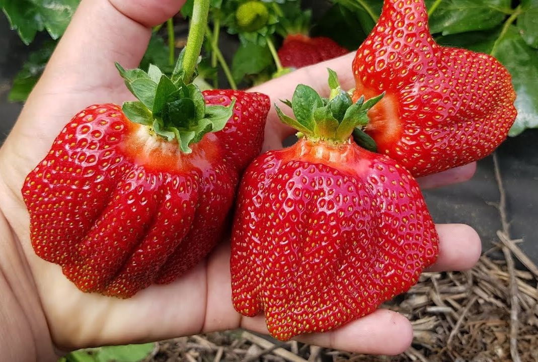 Ягоды Азии имеют правильную удлиненно-коническую форму. Кожица ярко-красная, блестящая. При полном вызревании ягода полностью окрашивается в красный. Мякоть нежного розового окраса, плотная, сочная, с выраженным многогранным ароматом. В ягодах отсутствуют пустоты. Вкус мякоти Азии очень сладкий, истинно земляничный, с приятной ненавязчивой кислинкой. Многие огородники хвалят вкусовые качества этого сорта, оценивая их во все 5 баллов!